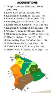 - LAND ACQUIRED: 4,428 acres of land already acquired suggested by community members Waikapuna will add approximately 2,200 acres.